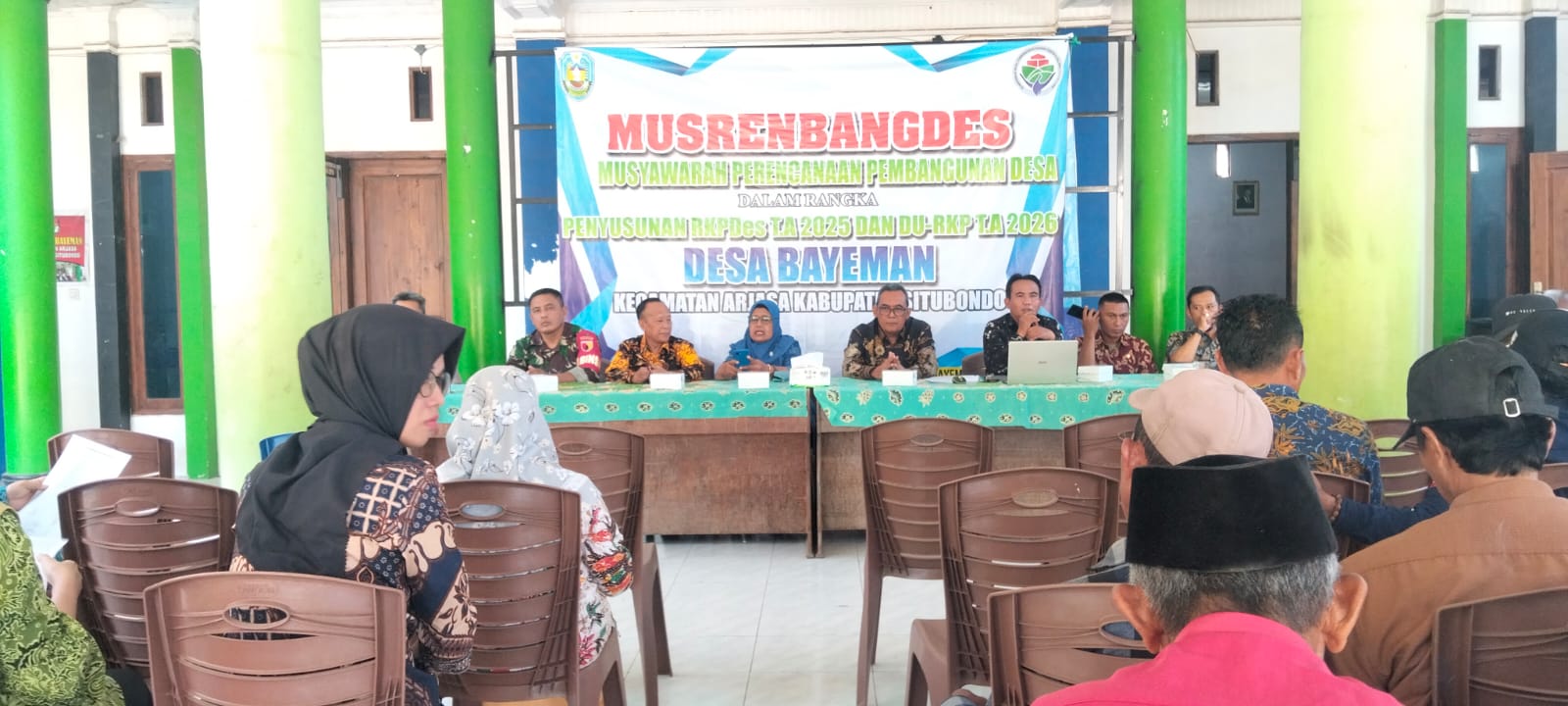 Pemerintah Desa Bayeman dan Badan Permusyawaratan Desa (BPD) menggelar Musyawarah Perencanaan Pembangunan Desa (Musrenbangdes) dan Musyawarah Desa (Musdes) untuk Perencanaan dan Penetapan Rencana Kerja Pembangunan Desa (RKPDes) Tahun Anggaran 2026. Acara ini berlangsung pada Kamis, 2 Oktober 2025, di Balai Desa Bayeman.